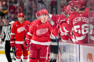 Lucas Raymond’s all-around game has evolved the young forward into the Detroit Red Wings best offensive threat. Adding more strength the past two offseasons has helped Raymond to stay on the puck and not get knocked off of it. While his defensive game has also improved as he has gained more strength, he is smart and hardworking, has good anticipation along with a strong forecheck. The young forward is transforming into one of the best players in the NHL, and the Red Wings are reaping the benefits.