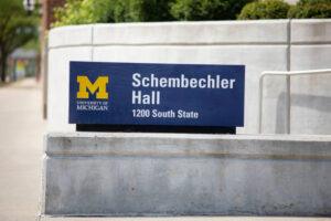 ANN ARBOR, MI – JUNE 16: A sign for Schembechler Hall, named for former University of Michigan football coach Bo Schembechler, is shown on the UM campus on June 16, 2021 in Ann Arbor, Michigan. Several dozen people are accusing the late Dr. Robert Anderson, former Head of University of Michigan Health Services and former UM football team doctor, of sexually abusing or sexually assaulting them. Matthew Schembechler, son of former Michigan football coach Bo Schembechler, and others have claimed they had notified Bo Schembechler about the abuse and that he had done nothing about it. Dr. Anderson passed away in 2008. (Photo by Bill Pugliano/Getty Images)